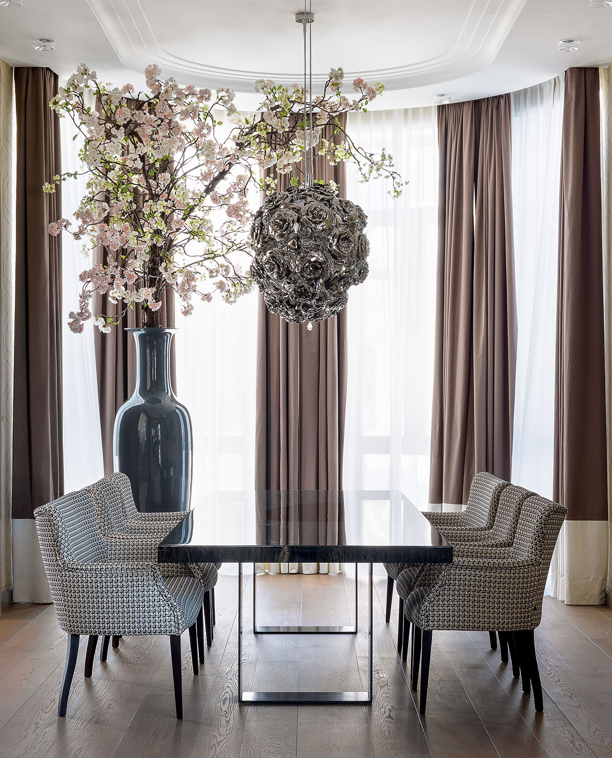 Вашему вниманию респектабельный интерьер дома в Подмосковье от AB Architects, за текстильное оформление которого отвечало ателье FIFTH AVENUE. Атмосфера дорогого современного интерьера создана в проекте с помощью эффектных отделок и натуральных благородных материалов, таких как камень, дерево, кожа, придающих интерьеру определенный лоск и задающих уровень. Текстиль не стал в этом исключением, поэтому авторы проекта отдали предпочтение благородным натуральным тканям спокойных и нейтральных оттенков, изящно обрамляющих самое главное – артистичные предметы дизайна и современное искусство.