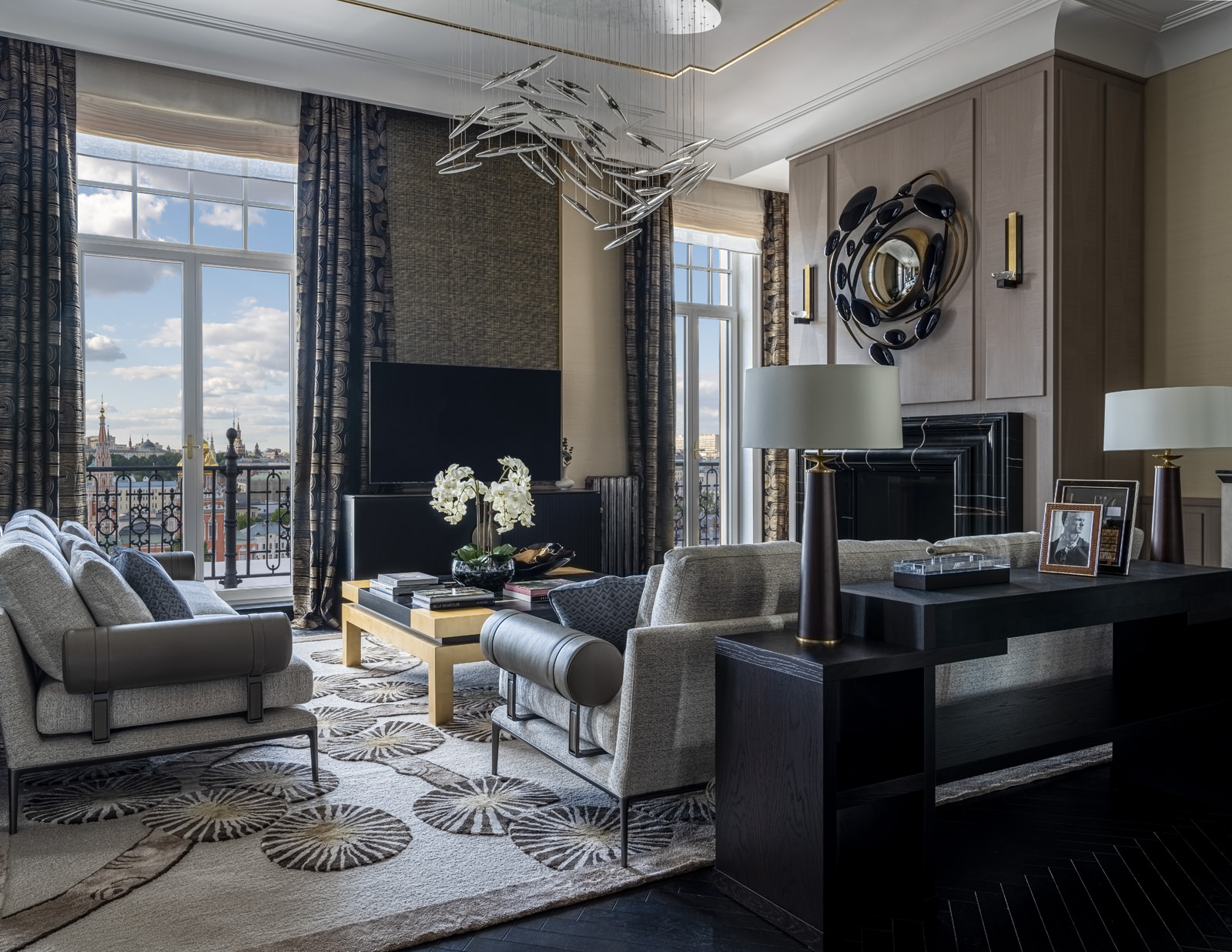 Interior of a penthouse with oriental motifs in the historical center of Moscow designed by architects "Bakharev and Partners"