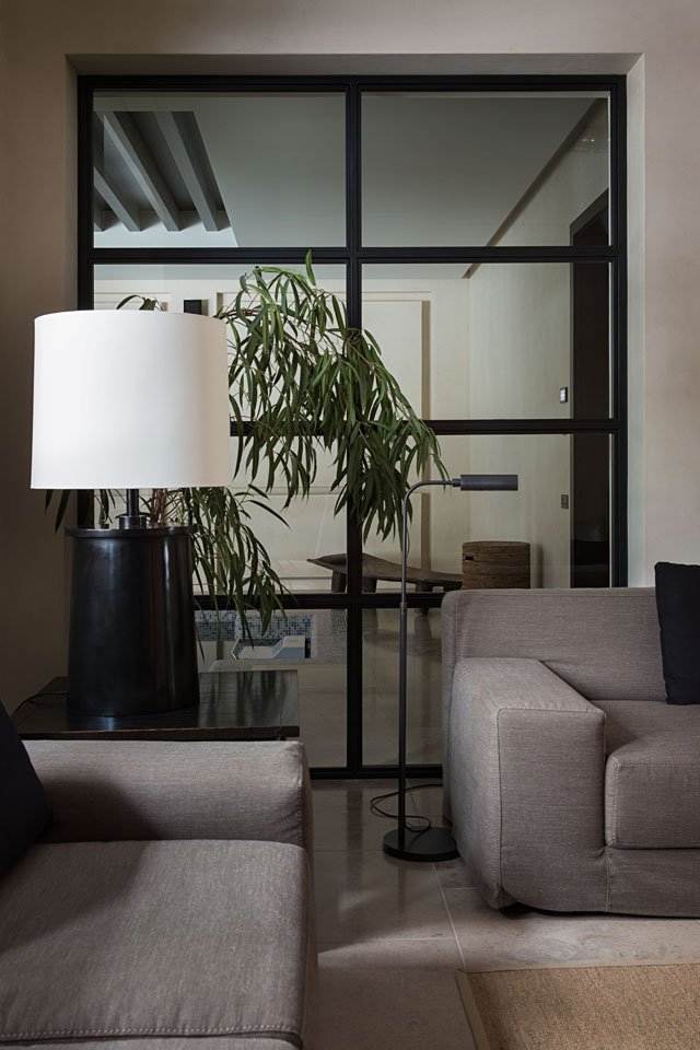 In interior design calm muted colorsand natural materials were used, with a specific attention paid to the artifacts brought from exotic countries or purchased in antique shops. Despite their origin, these things have no clear  reference to a particular style, that creats a sense of integrity.